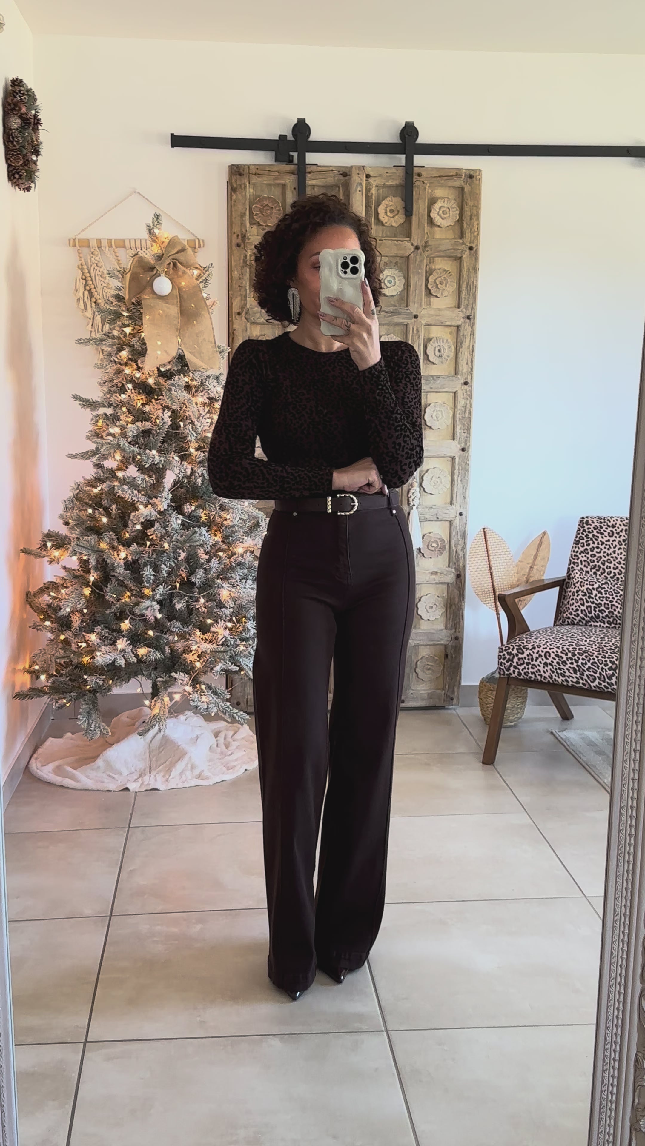 Body seconde peau en velours imprimé léopard brun, une pièce chic et sensuelle à la fois. Matière douce, extensible et élégante, idéale sous un blazer, une jupe ou un pantalon taille haute.