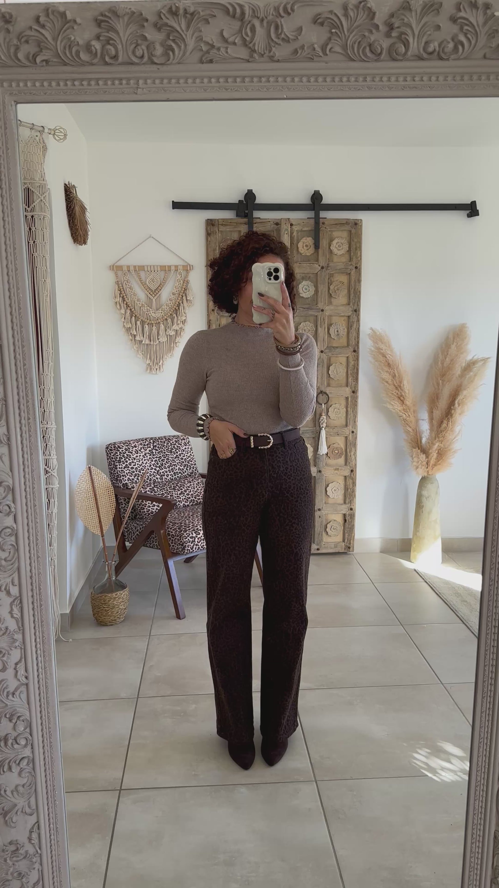 Le jean Mara revisite l’imprimé léopard dans une version subtile et moderne. Sa coupe droite allonge la silhouette tandis que sa toile légèrement texturée lui confère caractère et confort.